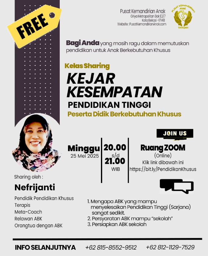 Daftar webinar ABK gratis sekarang di https://bit.ly/PendidikanKhusus